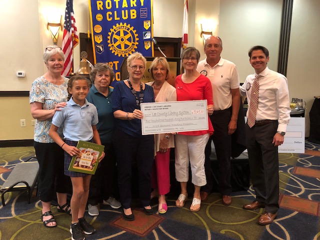 Rotary Club of Fort Myers South has teamed with the Friends of Lee County Libraries to give to the Lee County Library System’s Summer Reading Program. Representatives from Rotary and the Friends presented a $5,145.30 check to the library system during a luncheon on Monday, April 30.